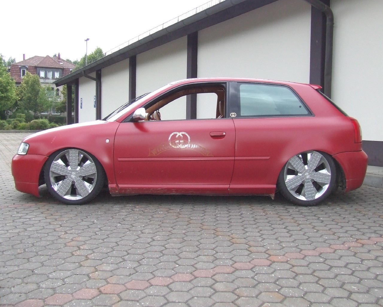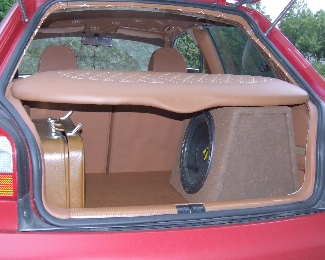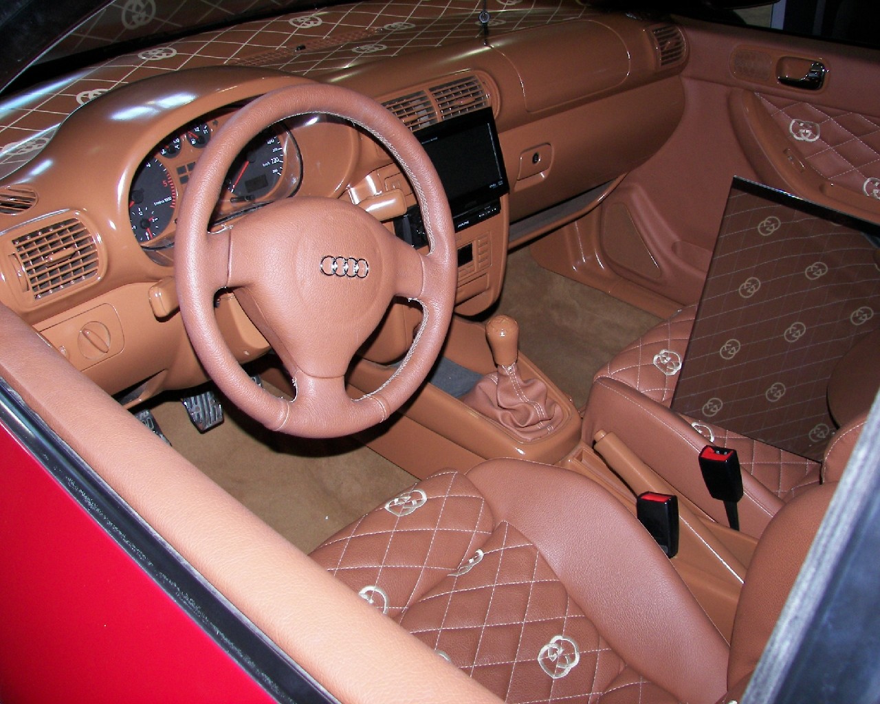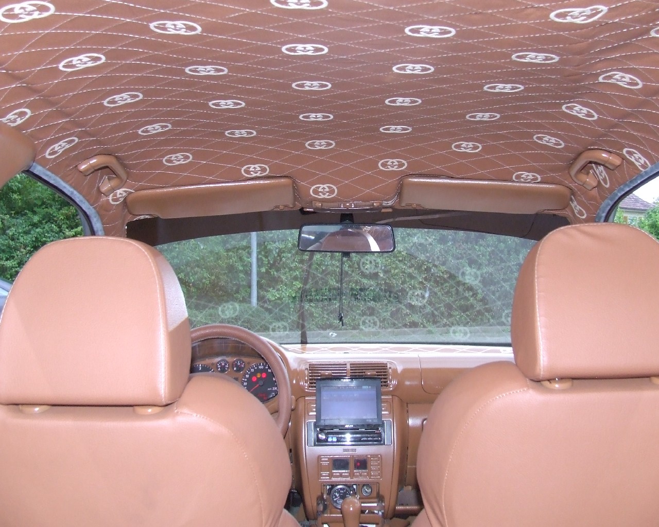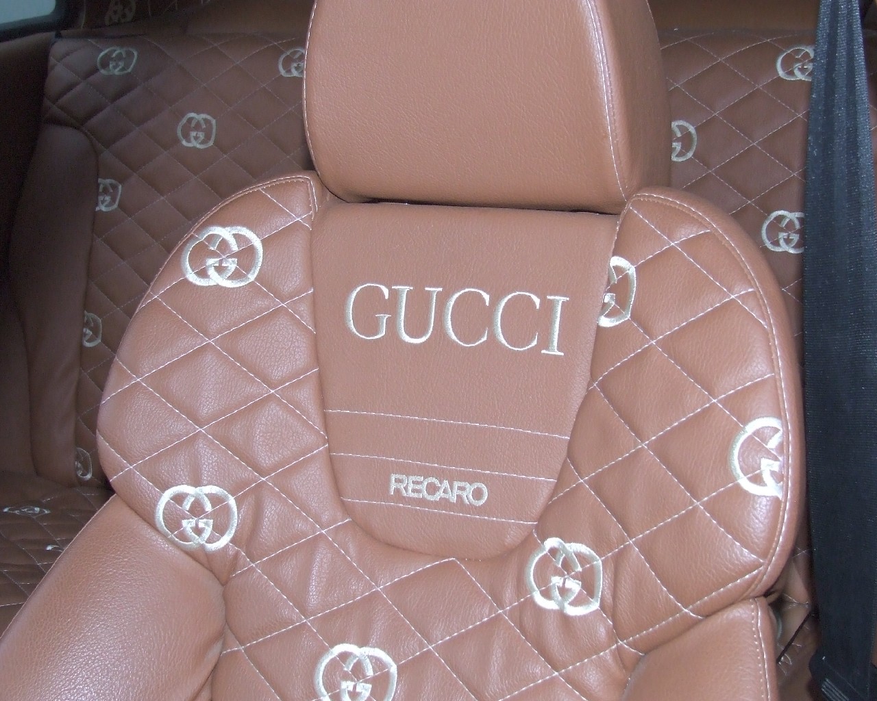 | Innenraum: | Brauner Teppich, Recaro S3 Ausstattung sowie Lenkrad, Schaltsack, Himmel, Kofferraumabdeckung und Türverkleidungen in braunem Leder und mit Gucci Logos und Rastern abgenäht. Alle Plastikteile im selben Farbton lackiert |