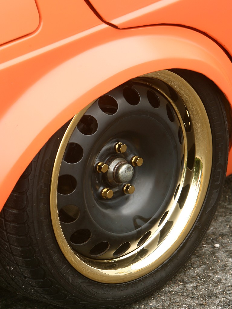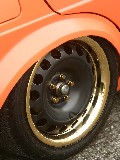 Felgen: | 16 Zoll Stahl mit goldenem Edelstahlring und goldenen Radbolzen |