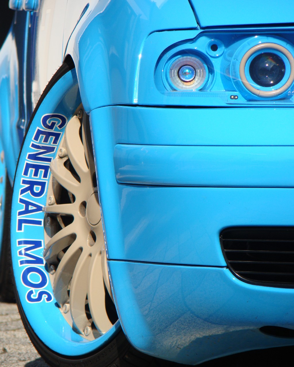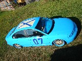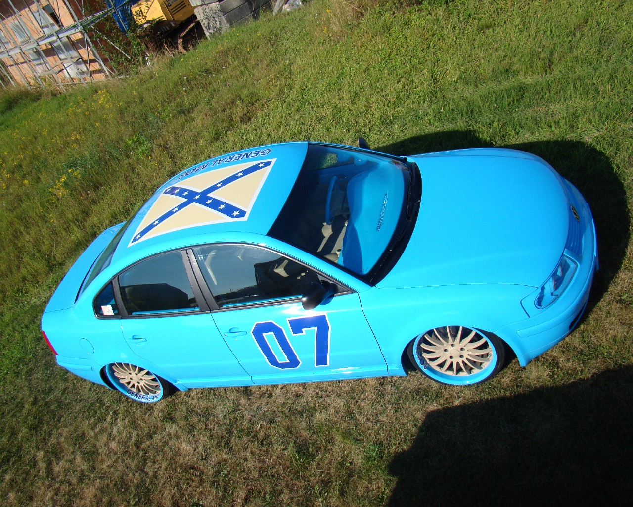 | Karosserie: | Seitenleisten, Seitenblinken und Heckemblem entfernt, Radläufe hinten verbreitert und tiefer gesetzt, Schriftzug und Flagge auf dem Dach, Nummern auf der Tür |