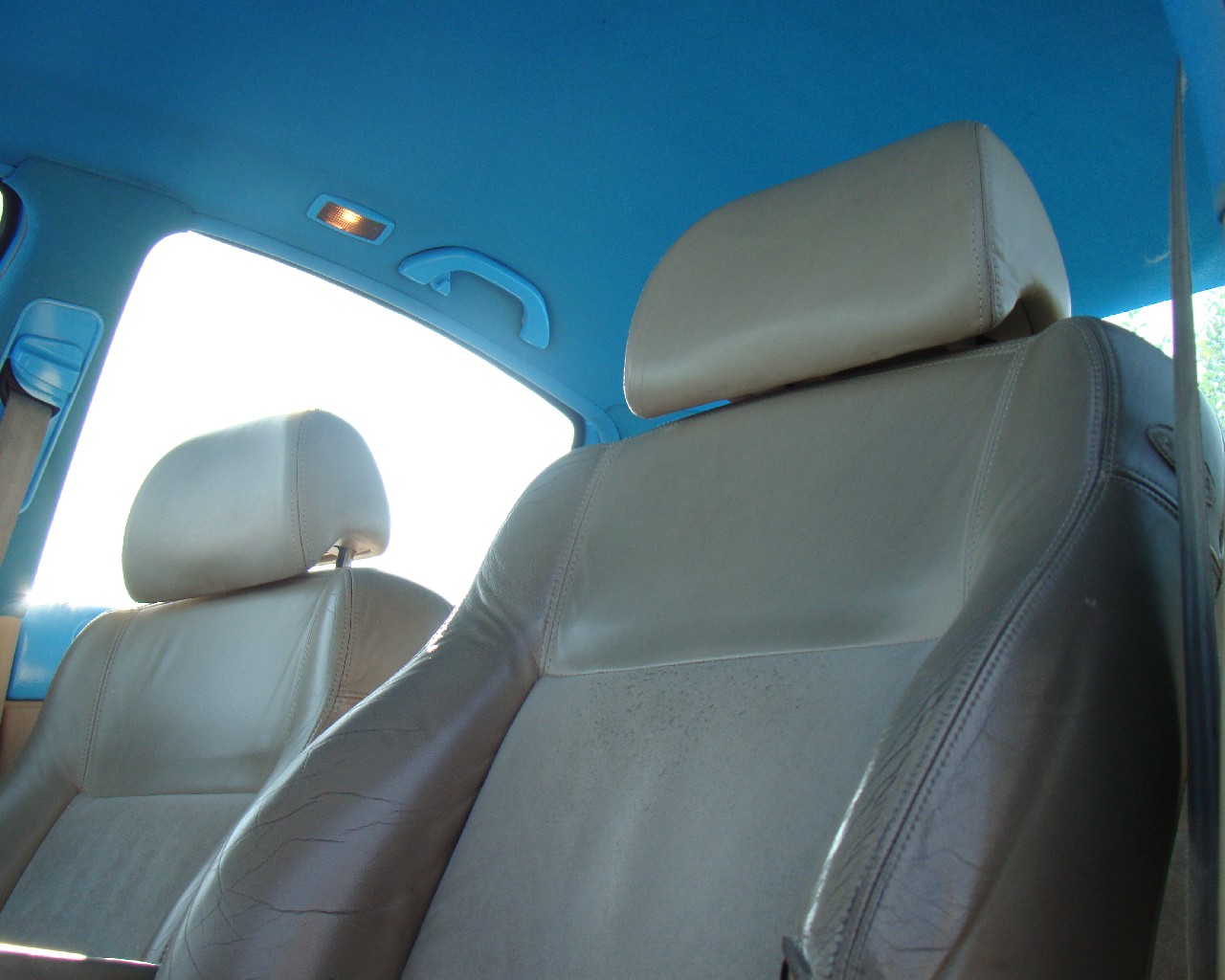 | Innenraum: | Teilleder- und Alcantarasitze, Viele Plastikteile und Himmel lackiert in Wagenfarbe, Rest in Beige, Druckanzeigen in der A-Säule |